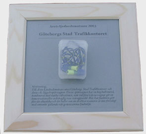 Willy Nicklasson accepted 2003s "Sound Polluter" for Gothenburgs Town Traffic Office, at the award ceremony inside one of the criticized "low floor trams" in front of media.