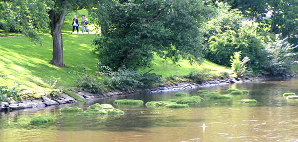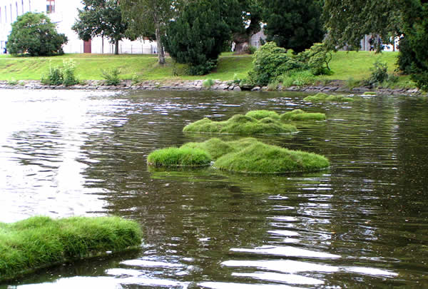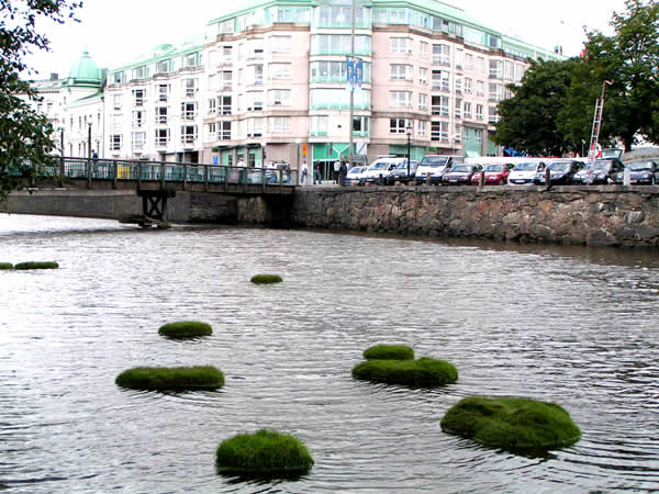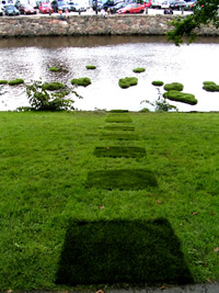 The Hydroponic Illusion is composed by a combination of natural and artificial elements along the canal edge and the park. A series of grass covered organic forms of several sizes are quietly floating in the canal where they slowly combine with the surrounding green areas. As the visitors approach these organic configurations and sit on the grass, they will encounter subtle distinctions of shape, texture and patterns created by a series of artificial interventions on the grass area along the water edge.