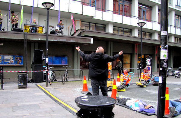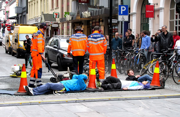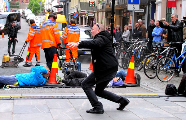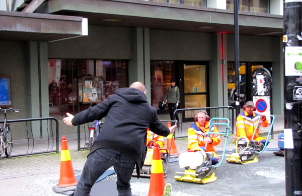 :: a performance with vibratory soil compactors together with the Norwegian pop group Kakkmaddafakka at Festspillene, Bergen, Norway