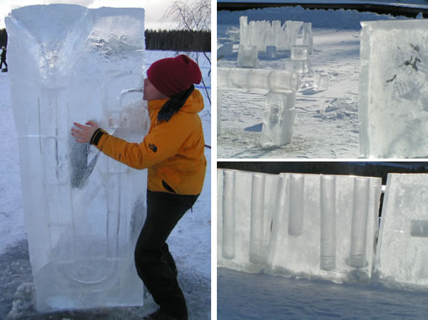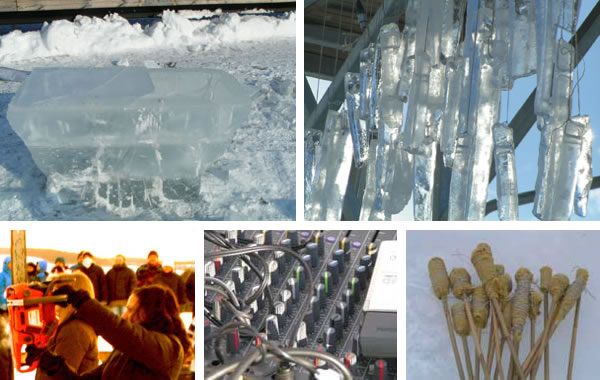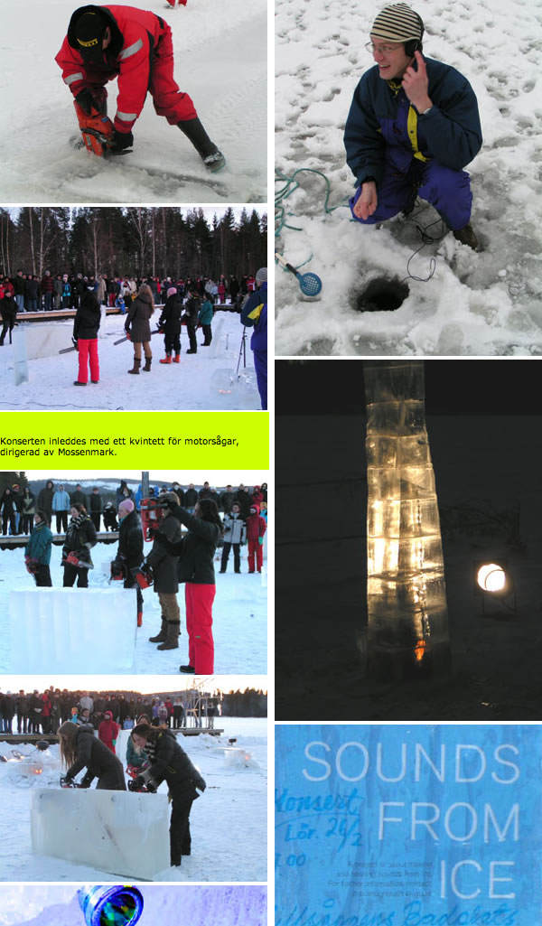 The students created sounding objects, instruments made of ice and learned to play on them, this was wound up with a concert which ended the one week long workshop at the lake Lillsången in Hällefors.